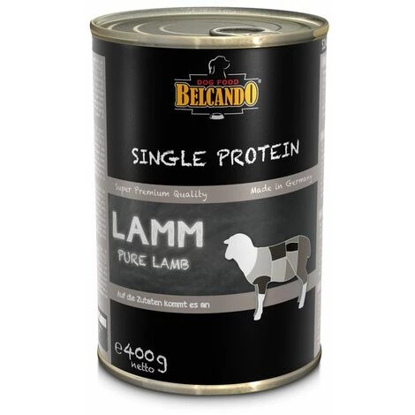 Hochwertiges, sortenreines NassfutterErhältlich in sechs ausgesuchten Fleischsorten ohne weitere Zusätze, die in Kombination mit dem Ergänzungsfuttermittel BELCANDO® Mix it GF auch zur Diagnose (Eliminationsdiät) und dauerhauften Fütterung bei Futterunverträglichkeiten verwendet werden können.Tierart: HundFutterart: ErgänzungsfuttermittelFutterform: FeuchtnahrungAdultInhalt: 400gZusammensetzung: Lammfleisch, -herz, -leber, -lunge, -niere, -pansen (73 %), Fleischbrühe vom Lamm (27 %)Analytische Bestandteile: Protein 11,0 %, Fettgehalt 5,5 %, Rohasche 1,5 %, Rohfaser 0,4 %, Feuchtigkeit 79,0 %Fütterungsempfehlung: Durchschnittswerte für die Fütterung von ausgewachsenen, normal aktiven Hunden finden Sie auf der Verpackung bzw. im Prospekt aufgeführt. Die richtige Fütterungsmenge lässt sich am besten über eine regelmäßige Gewichtskontrolle des Hundes ermitteln. Frisches Trinkwasser sollte immer zur freien Verfügung stehen.