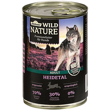 Dehner Wild Nature Heidetal Adult bietet Ihrem ausgewachsenen Hund ein Premium Hundefutter, das an die ursprüngliche und artgerechte Ernährung von Wölfen in freier Wildbahn anknüpft. Das Nassfutter Dehner Wild Nature Heidetal Adult mit zartem Kaninchen ist ein artgerechtes und ursprüngliches Hundefutter mit 70% tierischem Protein, 30 % pflanzlichen Inhaltsstoffen und 0 % Getreide.