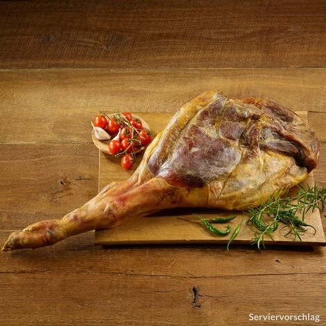Der Schinken ist original-vakuumverpackt und bei Auktionsende noch mind. 2 Monate haltbar (mit Etikett, Gewichtsangabe und MHD)