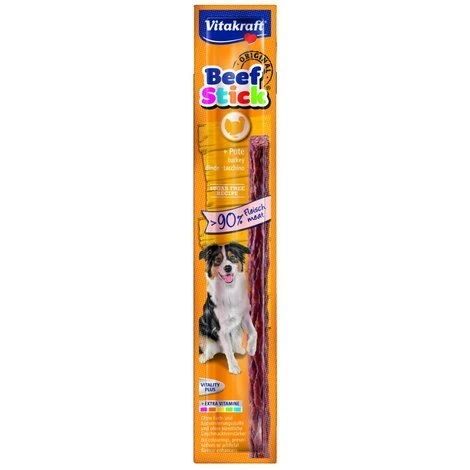 Ein Vitakraft Beef Stick® lässt einfach jedes Hunde-Herz höher schlagen! Das Original unter den Fleischsticks überzeugt große und kleine Vierbeiner gleichermaßen – durch den einzigartigen, herzhaften Geschmack, den absolut köstlichen Geruch und einen extra hohen Fleischanteil. Perfekt zum Verwöhnen, Belohnen oder einfach für den kleinen Hunger zwischendurch!