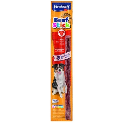 Ein Vitakraft Beef Stick® lässt einfach jedes Hunde-Herz höher schlagen! Das Original unter den Fleischsticks überzeugt große und kleine Vierbeiner gleichermaßen – durch den einzigartigen, herzhaften Geschmack, den absolut köstlichen Geruch und einen extra hohen Fleischanteil. Perfekt zum Verwöhnen, Belohnen oder einfach für den kleinen Hunger zwischendurch!
