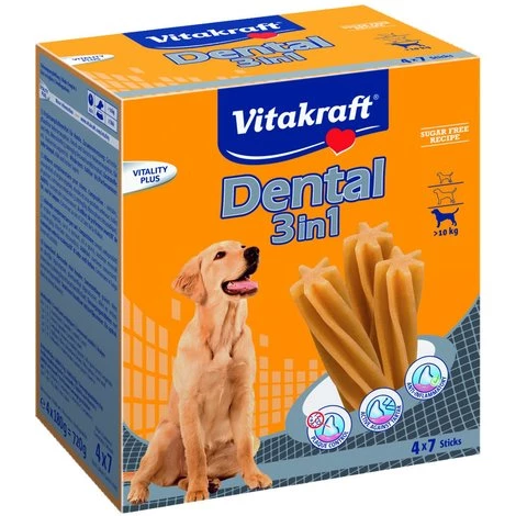 Vitakraft Dental 3in1 Zahnpflegesticks überzeugen durch ihre innovative 3in1 Wirkstoffkombination: